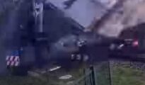 This is the harrowing moment a passenger train smashes into a lorry carrying thousands of pieces of fruit. CCTV footage shows a lorry crossing the level crossing, then reversing after a car approaches from the More...