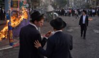Violent clashes erupted in the ultra-Orthodox city of Bnei Brak, just east of Tel Aviv, as thousands of protesters took to the streets to oppose proposed conscription laws. Video footage from the scene shows More...