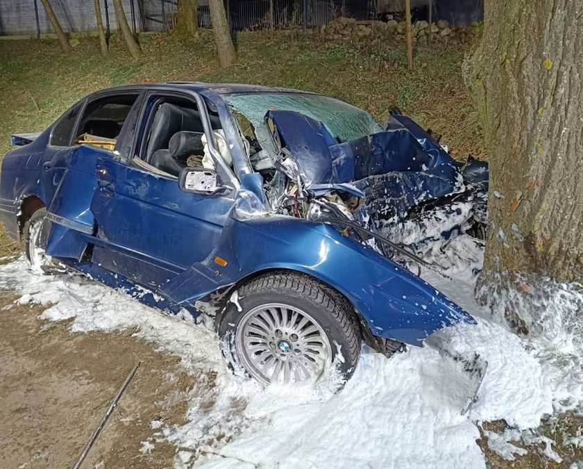 BMW roztrzaskało się na przydrożnym drzewie.