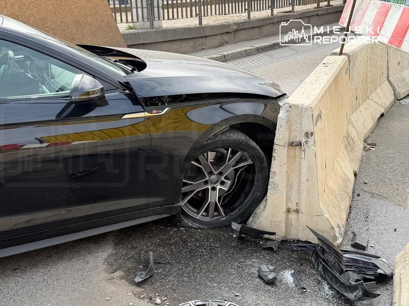 Jak ustalił Miejski Reporter, kierowca osobowego Audi uderzył w tymczasowe betonowe zapory ustawione przy pracach drogowych. Powód? Mężczyzna miał podczas jazdy zamyślić się nad tym, co kupić żonie na urodziny.