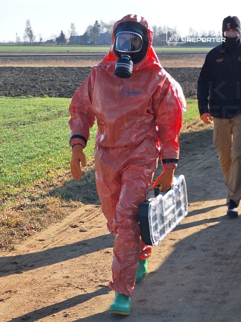 Wraz z mundurowymi w kamizelkach oraz z ostrą bronią na miejsce przybyli specjaliści ze straży pożarnej, pracujący w kombinezonach ochronnych z jednostki chemiczno-ekologicznej z Warszawy.